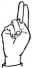 На ћирилици написано ЕВГЕНИЈЕ БАЧЕВИЋ састоји се из 15 слова [?]. Исписано ћириличном једноручном азбуком за глувонеме: